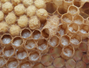 получают ещё один целебный продукт – трутневый гомогенат, или гомогенат трутневых личинок. Среди продуктов пчеловодства гомогенат трутнёвых личинок (еще его называют «трутневое молочко») по спектру витаминного состава занимает первое место.