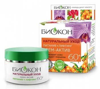Крем Биокон Натуральный Уход 60+ Крем-актив Питание и Лифтинг специально создан для ухода за зрелой кожей, нуждающейся в интенсивном питании и увлажнении.