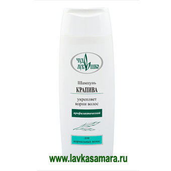 Чудо-лукошко Крапива — шампунь для нормальных волос. Эффективно и бережно промывает волосы. Активизирует кровоснабжение волосяных луковиц, питает, поддерживает водно-жировой баланс. D-пантенол восстанавливает разрушенные волосы, укрепляет корни. Витамин Е предохраняет волосы от вредных внешних воздействий и солнца. Кератин укрепляет структуру волос, предотвращая их разрушение. Лецитин способствует хорошему промыванию. Экстракт крапивы содержит витамины A, C, E, K и группы В, делает волосы эластичными, ускоряет их рост, устраняет сухость, ломкость и выпадение, укрепляет волосы, улучшает их структуру, снимает раздражение и шелушение кожи. Экстракты аира, лопуха, мать-и-мачехи и хмеля предупреждают выпадение волос, стимулируют их рост, укрепляют корни волос и питают кожу головы, способствуют легкому расчесыванию. Шампунь защищает волосы от пересушивания и выгорания, придает блеск и пышность, подходит для частого применения.