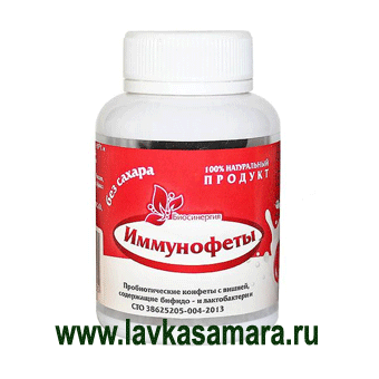 «ИММУНОфеты» — это 100% натуральный продукт, содержащий полезные бифидо- и лактобактерии! Они улучшают микрофлору кишечника, помогают предотвратить дисбактериоз и заболевания желудочно-кишечного тракта, укрепляют иммунитет. Подходят для диетического, диабетического и спортивного питания.