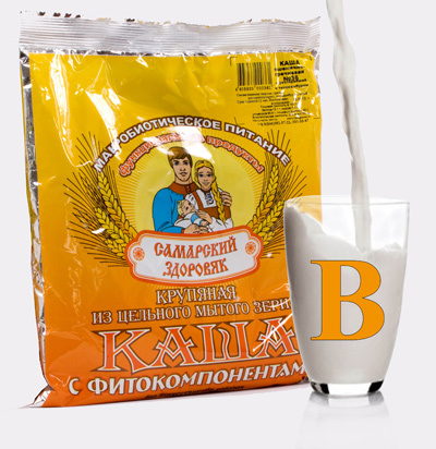 В состав каши входят: цельные (с сохранением оболочек), термообработанные зёрна пшеницы, а также в виде шротов (муки) расторопша и лён и, в отличии от каш “Здоровяк – Пробиотик ” и “Здоровяк – Пробиотик А” “Здоровяк – Пробиотик В”, содержит в сухом виде дружественные бактерии кефира индийских йогов, айрана и курунги.