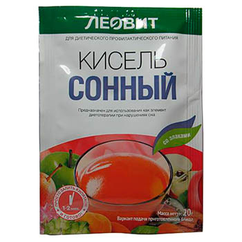 Кисель «Сонный» – мягкий напиток при нарушениях сна, предназначен для диетического профилактического питания и использования в качестве элемента диетотерапии при нарушениях сна.