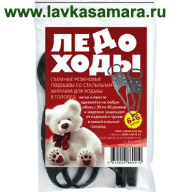Съёмные резиновые подошвы со стальными шипами для ходьбы в гололёд. Легко и просто одеваются на любую обувь с 35 по 45 размер и надежно защищают от падений и травм в самый сильный гололёд.