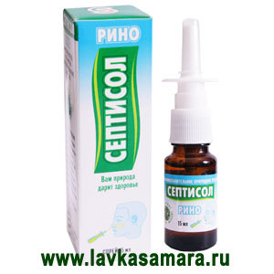 Главным действующим звеном «Септисол Рино» является природное противовоспалительное средство «Септисол». В состав «Септисола» входят: травы и минералы Сибирско-Алтайского региона, продукты пчеловодства и натуральный малахит. «Септисол Рино» — средство для местного применения в оториноларингологии. Обладает противовоспалительным, противомикробным, противоотечным эффектами и повышает местный иммунитет слизистой оболочки носа. Обладает антибактериальным действием на большинство грамположительных и грамотрицательных микроорганизмов, вызывающих инфекционно-воспалительные заболевания носовой полости и придаточных пазух. Применяется для всех возрастных групп. Увлажняет слизистую оболочку носа, разжижает густую слизь, размягчает сухие корочки в полости носа и способствует их удалению.
