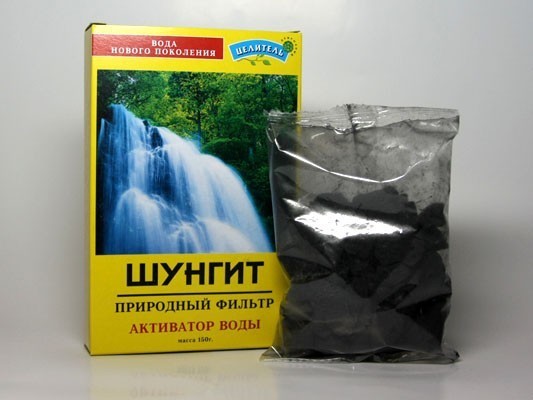 При взаимодействии шунгита с водой глобулы углеродного вещества — фуллерены — покидают минерал и попадают в воду. Вместе с углеродом в воду попадают и другие полезные минеральные вещества.