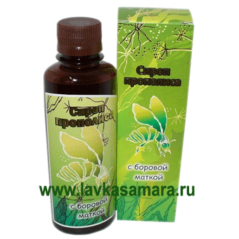 Состав: сахар, вода питьевая, трава ортилии однобокой (боровая матка), прополис, лимонная кислота.