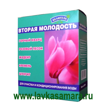 Смесь минералов «Вторая молодость» очищает воду от железа, хлора, тяжелых металлов, бактерий, вирусов, грибков, а также нитратов, пестицидов, нефтепродуктов. Вода после фильтрации отличается кристальной чистотой, мягкостью и родниковой свежестью.