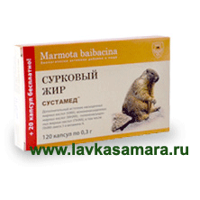 Капсулы Обогащенный сурковый жир обладают повышенной биологической активностью. Благодаря тому, что сурок имеет в своем рационе только растительную пищу, его жир превосходит другие жиры по процентному содержанию ПНЖК. Сурковый жир в комплексе с рыбьим жиром оказывает максимально эффективное воздействие на организм человека.