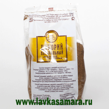 Способ приготовления: положить 1-2 чайные ложки (2-4г) растворимого цикория в чашку, залить горячей водой (150мл) и перемешать. Молоко, сливки, сахар или сахарозаменитель добавить по вкусу.
