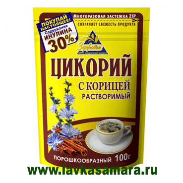 Цикорий не содержит кофеина, при этом по вкусу похож на кофе. Главная особенность продукта заключается в повышенном содержании инулина (около 30%). Он является природным полисахаридом, получаемым из корней и клубней некоторых растений. Инулин регулирует обмен веществ в организме, способствует снижению холестерина, выведению из организма тяжелых металлов и токсинов.