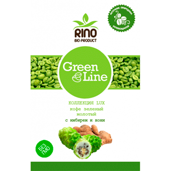 Кофе зеленый Green Line, коллекция LUX, с ИМБИРЕМ и НОНИ, нежареный, молотый, готовый к употреблению.