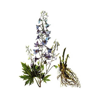 Живокость высокая (Delphínium elátum, шпорник посевной, рыцарская шпора) обладает обезболивающим, антибактериальным действием, расслабляет скелетную мускулатуру. Применяется при повышенном мышечном тонусе (травмы, инфекции, паркинсонизм, рассеянный склероз и др.), при переломах костей (в виде примочек и компрессов), а также женских заболеваниях, болезнях легких, головной боли, заболеваниях мочеполовой системы.